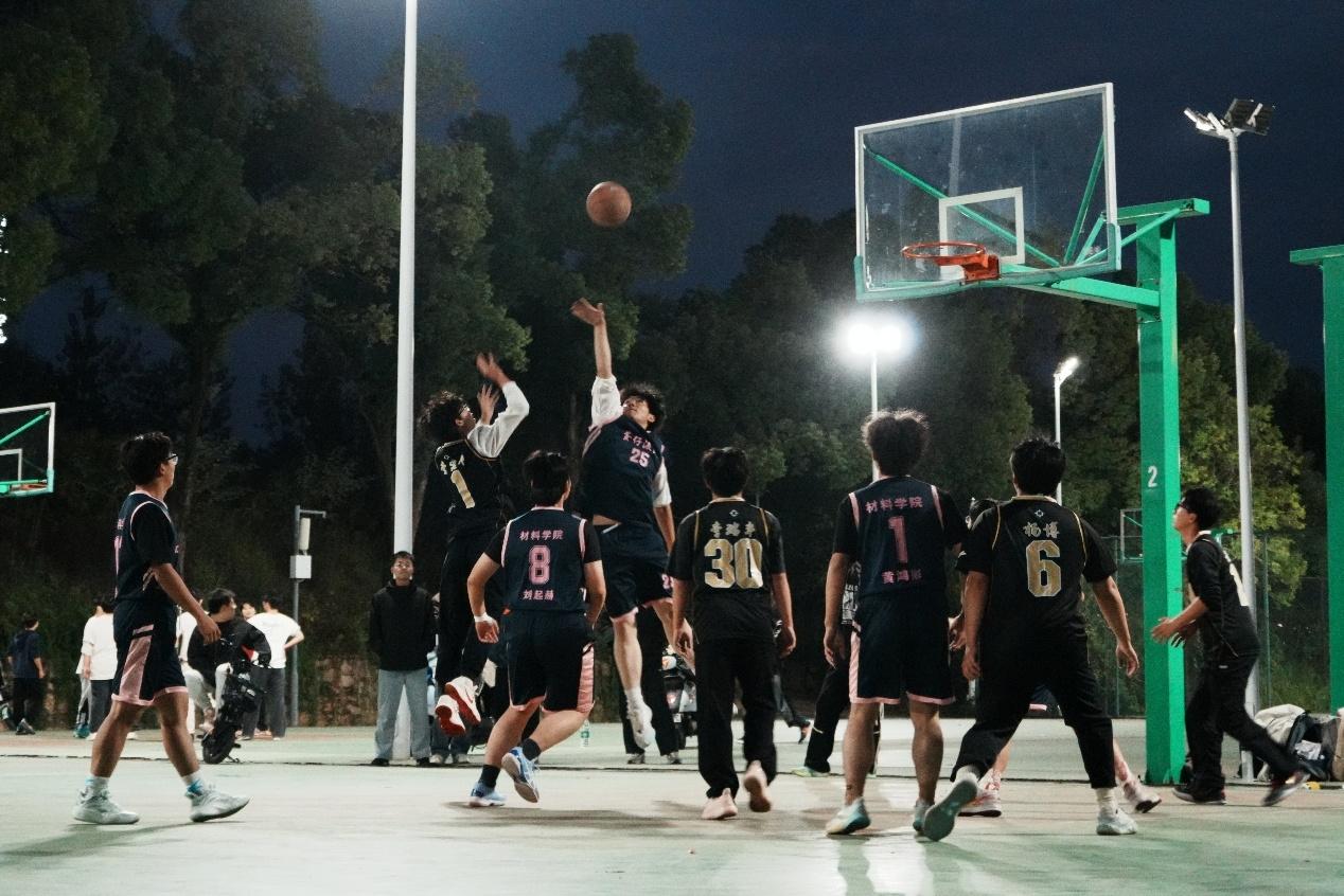 球场上,球员们全情投入、奋勇拼搏,展现出高超的篮球技艺与默契无间的团队配合。那一次次精准无误的投篮、一个个精妙绝伦的传球,赢得了场边观众的阵阵掌声与声声喝彩。尽管天色逐渐昏暗,但材料学院的新生们依旧绽放着不屈的光芒。他们用汗水诠释青春的活力,以拼搏书写团结的篇章,充分彰显了材料学子昂扬向上的精神风貌。