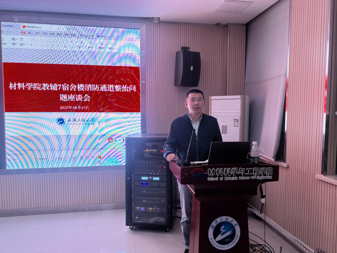(通讯员:刘虎森)为响应学校号召,切实保障教辅七宿舍楼内女同学的生命财产安全,进一步规范宿舍消防通道管理,消除消防安全隐患,10月14日,材料学院在学院A326会议室组织召开教辅七宿舍楼消防通道安全整治的专题座谈会。学院党委副书记马科、各年级辅导员以及各年级住在教辅七宿舍楼的女同学代表共同参会,凝聚多方力量,为宿舍消防通道安全整治工作出谋划策。