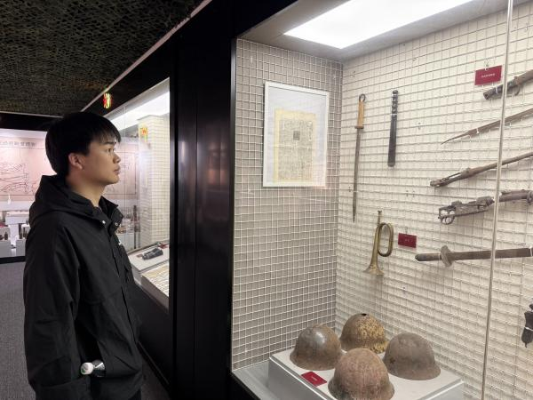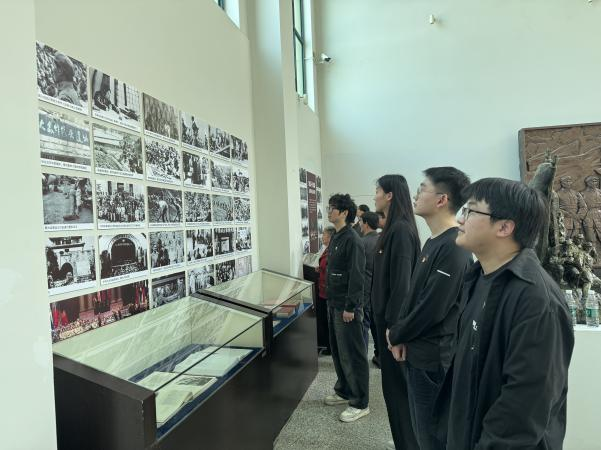 在湖北军民抗战博物馆前,全体党员面向鲜红的党旗庄严伫立,高举右拳重温入党誓词,铿锵有力的誓言回荡现场,彰显新时代高校党员坚守初心、勇担使命的坚定信念。随后,师生们走进博物馆沉浸式学习,通过历史照片、抗战实物等珍贵史料,直观感受革命先辈的奋斗历程,进一步坚定铭记历史、珍爱和平、开创未来的理想追求。